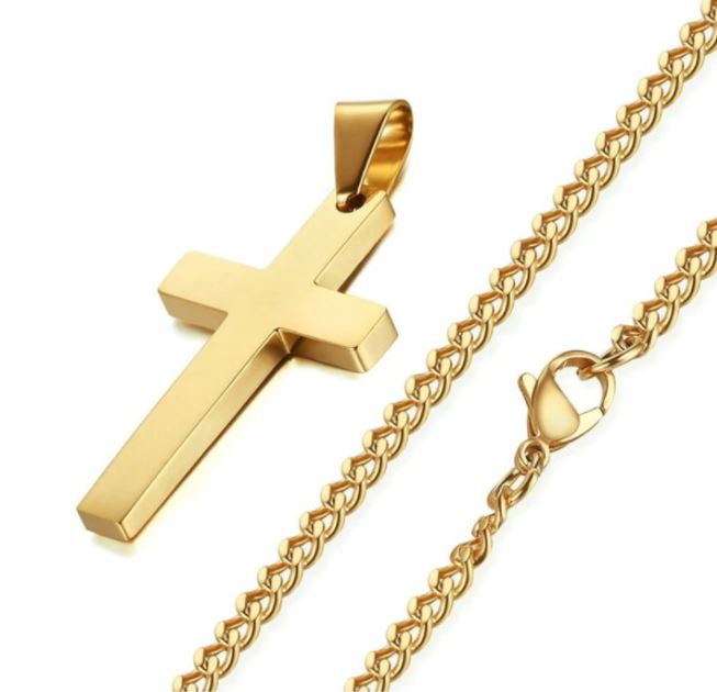 Náhrdelník Ježíšův Kříž v jeho leštěné variantě, vyroben z moderní